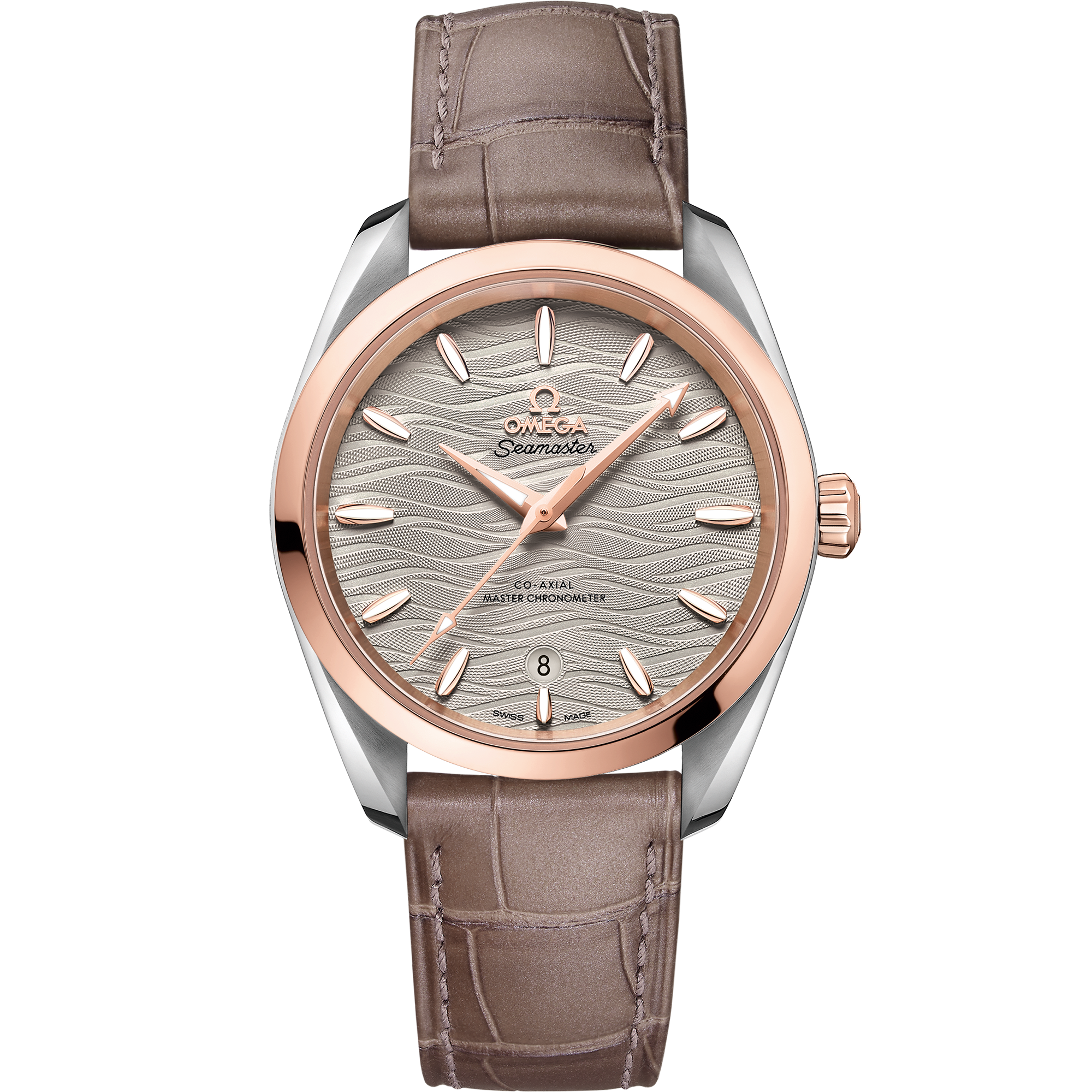 The Seamaster Aqua Terra is a superb tribute to OMEGA’s rich maritime heritage. In this 38mm modelthe symmetrical case has been crafted from stainless steelwith a wave-edged design featured on the back. The black dial is distinguished by a horizontal “teak” pattern which is inspired by the wooden decks of luxury sailboats. There is also a date window at 6 o'clock and rhodium-plated hands and indexes filled with white Super-LumiNova. Presented on a polished and brushed braceletthis certified chronometer is powered by the OMEGA Master Chronometer calibre 8800certified at the industry’s highest standard by the Swiss Federal Institute of Metrology (METAS).