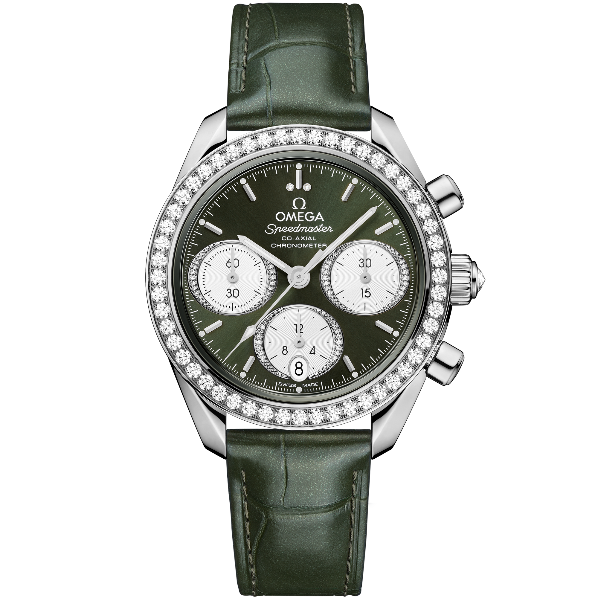 The Speedmaster 38 mm collection has been crafted with simplicitysize and colour in mindyet still retains the look and heritage of OMEGA’s most famous chronograph. This model features a stainless steel case and bezel which includes a tachymeter scale on a black aluminium ring. The sun-brushed grey dial includes horizontal oval subdials and a vertical oval date window at 6 o’clock. The indexes are rhodium-plated while the hands are also rhodium-plated or orange. The watch has a Novo Nappa leather strapa Seahorse medallion on the casebackand is driven by the OMEGA Co-Axial Calibre 3330.
