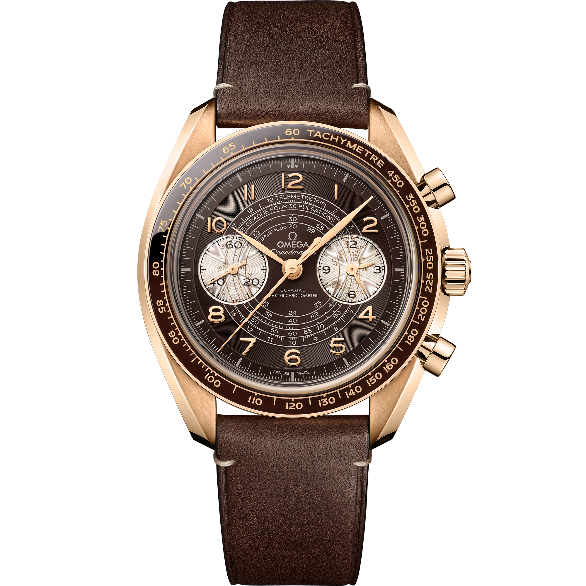 The Chronoscope collection has taken the legendary Speedmaster design and combined it with inspiration from OMEGA’s chronograph wristwatches from the 1940s. This 43 mm model is crafted in stainless steel with a silvery dial with blackened subdials. Along with a black anodized aluminium bezel ring with its tachymeter scalethe leaf-shaped hands and Arabic numerals are also blackenedwith a unique “spiral” track pattern running beneath the numbers. Most notablythe dial is printed with three distinctive timing scales in a 1940’s “snail” designincluding a tachymeter scalea pulsometer scale and a telemeter scale. Presented on a stainless steel braceletthe watch features a black small-seconds counter at 9Hand a black 60-minute and 12-hour recorder at 3H with red hands. Insidethe timepiece is driven by the OMEGA Co-Axial Master Chronometer Calibre 9908.